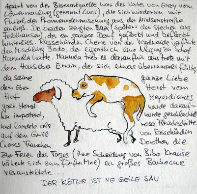 „Der Köter ist ne geile Sau “; Mischtechnik auf Karton; 17 x 17cm; 2007