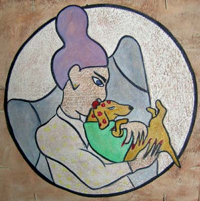 „Schmatz “; Mischtechnik auf Sperrholz; 16 x 16cm; 2007