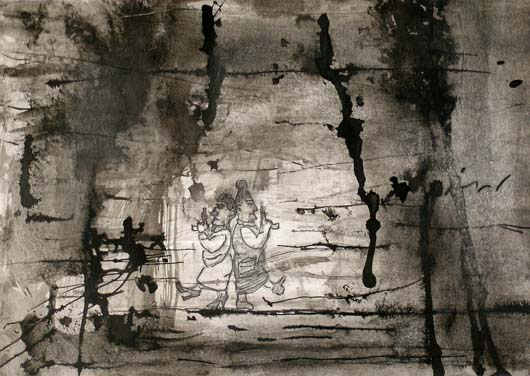 „Duelletten "; Mischtechnik auf Papier; 17cm x 24cm; 2010