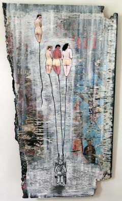 „Stricke reißen nicht "; Mischtechnik auf Faserplatte; 93cm x 55cm; 2010