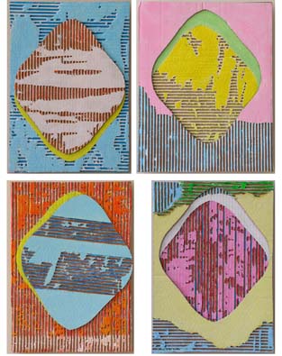 „Tigerhorn und Nashornkralle 1-4"; Acryl auf Pappe; ca. 30cm x 42 cm; 2012