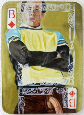 „Toy Boy Caro Bube; Öl/edding auf MDF; 70cm x 50cm; 2014