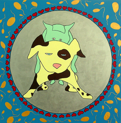 „Hunde, fickend “; Acryl auf Leinwand; 120cm x 120cm; 2007