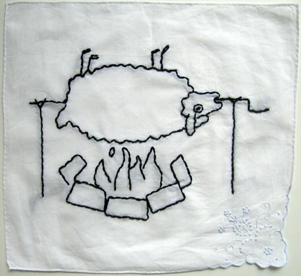 „Frohe Ostern"; Garn auf Stoff; 12cm x 13cm; 2008