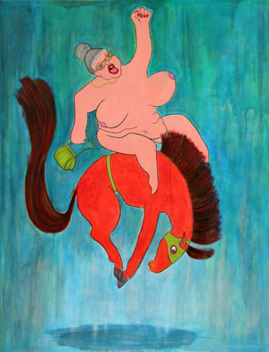 „Wilde Dame und roter Mustang "; Acryl auf Leinwand; 130cm x 100cm; 2008