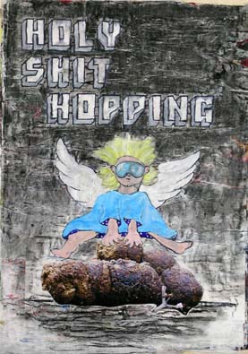 „HOLY SHIT HOPPING"; Mischtechnik auf Holz; 60cm x 44cm; 2009