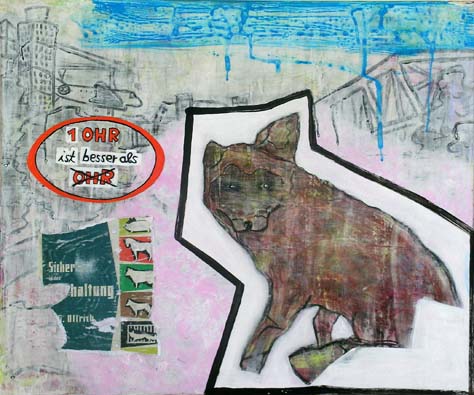 „Mein Nachbar, der Einohrfuchs "; Mischtechnik auf MDF; 50cm x 60cm; 2011