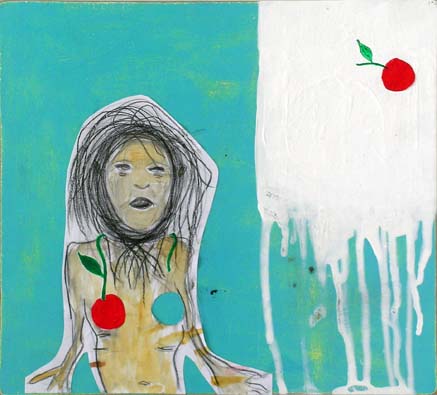 „Ein Kirschbusen "; Mischtechnik auf MDF; 27cm x 30cm; 2011
