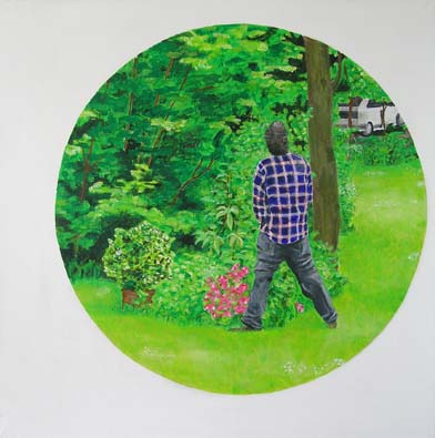 „Mann, pissend "; Acryl auf Leinwand; 100cm x 100cm; 2012