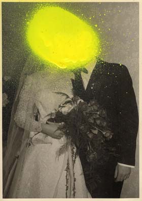 „Brautpaar 1" ; acrylic spray auf Vintagefoto; 15cm x 10,5cm; 2017