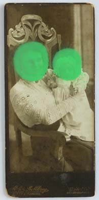 „Familie 1" ; acrylic spray auf Vintagefoto; 13cm x 6cm; 2017