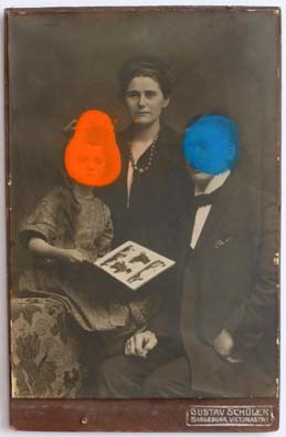 „Familie 2" ; acrylic spray auf Vintagefoto; 16,7cm x 10,8cm; 2017