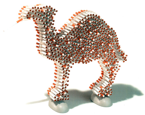 „CamelCamel“;Acrylglas,Zigaretten,Holz;50cm;2001